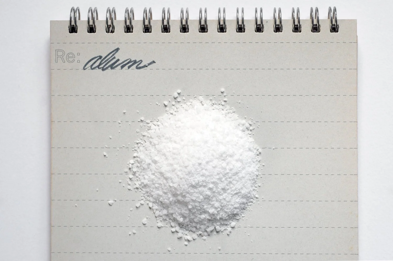 I, like many marblers and dyers, am in the habit of using the term ‘alum’ to refer to two different compounds: potassium aluminum sulfate and aluminum sulfate. These two metallic salts function essentially the same way for mordanting, but it's worthwhile to consider their differences. I will not include aluminum acetate in this discussion, as it is always specified by name and is not in common use for marbling paper.